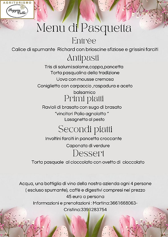 IN PRIMO PIANO… L’AGRITURISMO POGGIACOLLE PRESENTA LE PROPOSTE DELLE FESTIVITA’ PASQUALI 2026, DOMENICA 5 E LUNEDI’ 6 APRILE…